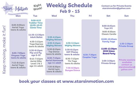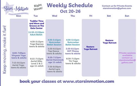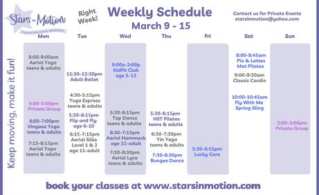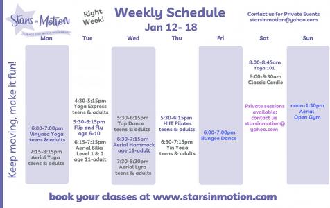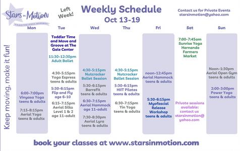 Email us at starsinmotion@yahoo.com for information on private group or individual classes in all our movement styles as well as Date Night Dance Lesson, Bungee Dance, Couples Yoga. Celebrate a life event or provide professional development.