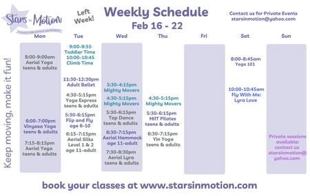 Email us at starsinmotion@yahoo.com for information on private group or individual classes in all our movement styles as well as Date Night Dance Lesson, Bungee Dance, Couples Yoga. Celebrate a life event or provide professional development.